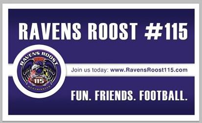 We are Ravens Roost #115, a social group and fan club of the Baltimore Ravens located in Westminster, Maryland. We bring people together in our community for social activities and to raise money for local charities. We have 4+ social events planned per year, plus a monthly meeting on the 4th Monday at local Westminster restaurants.