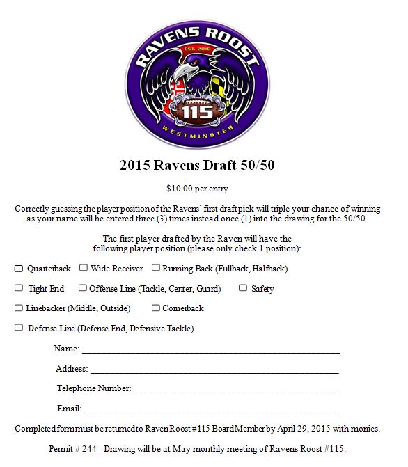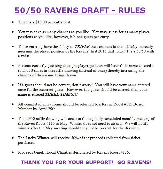 Thank you for participating in the 2015 Ravens Draft 50/50. GOOD LUCK!!!